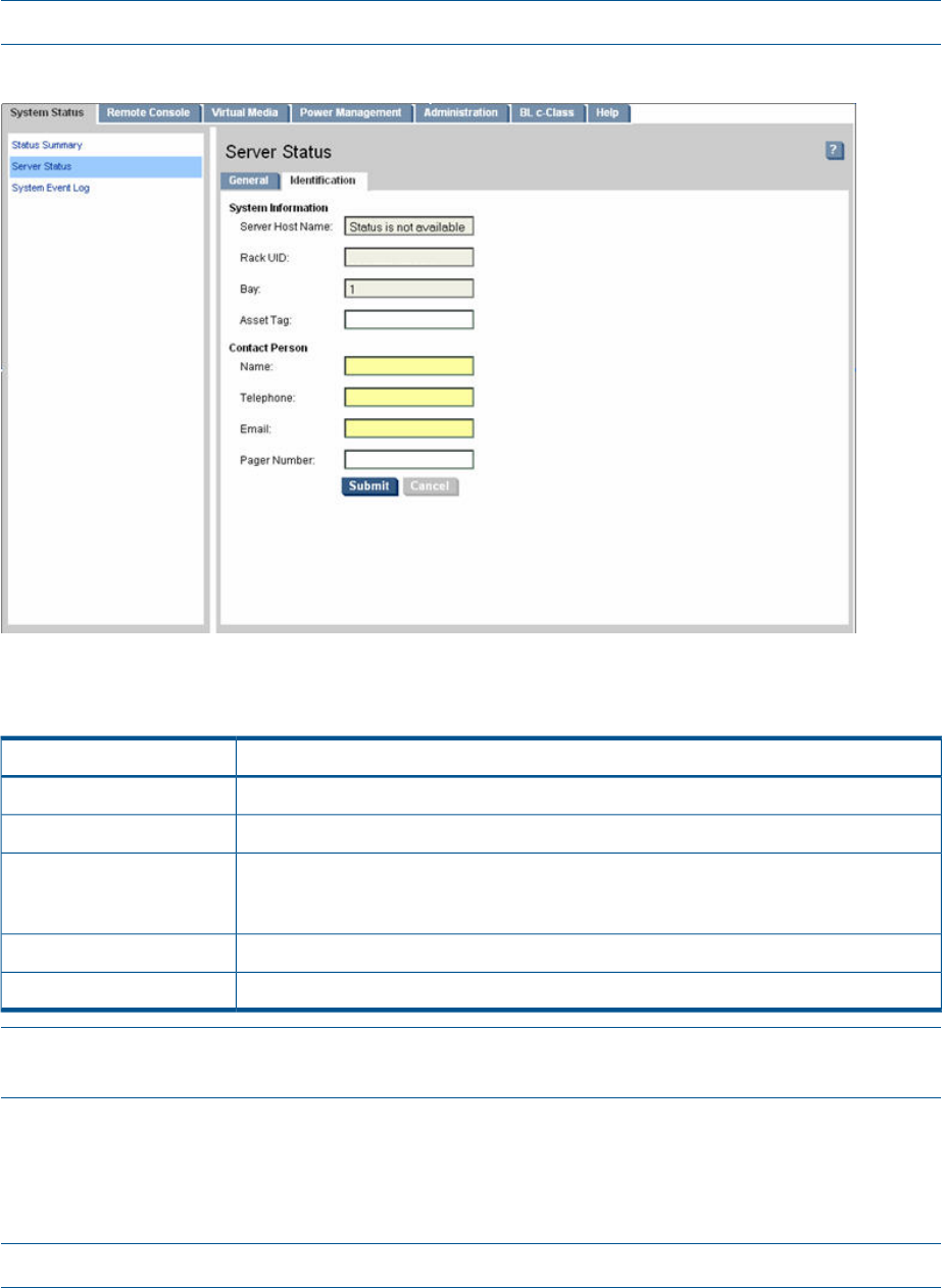 NOTE: Many of the fields are published by the iLO 2's SNMP for visibility to management