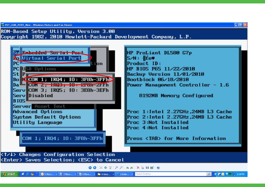 Support in RBSU. Select this tab and set BIOS Serial Console Port to COM1:.