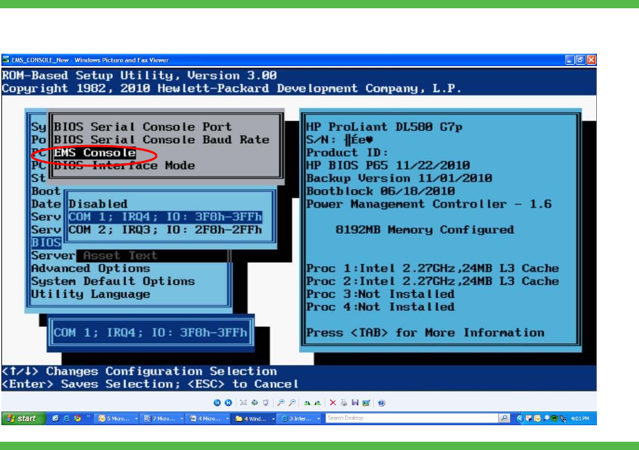 10. Highlight the EMS Console option (Figure 9), and then press the Enter key.