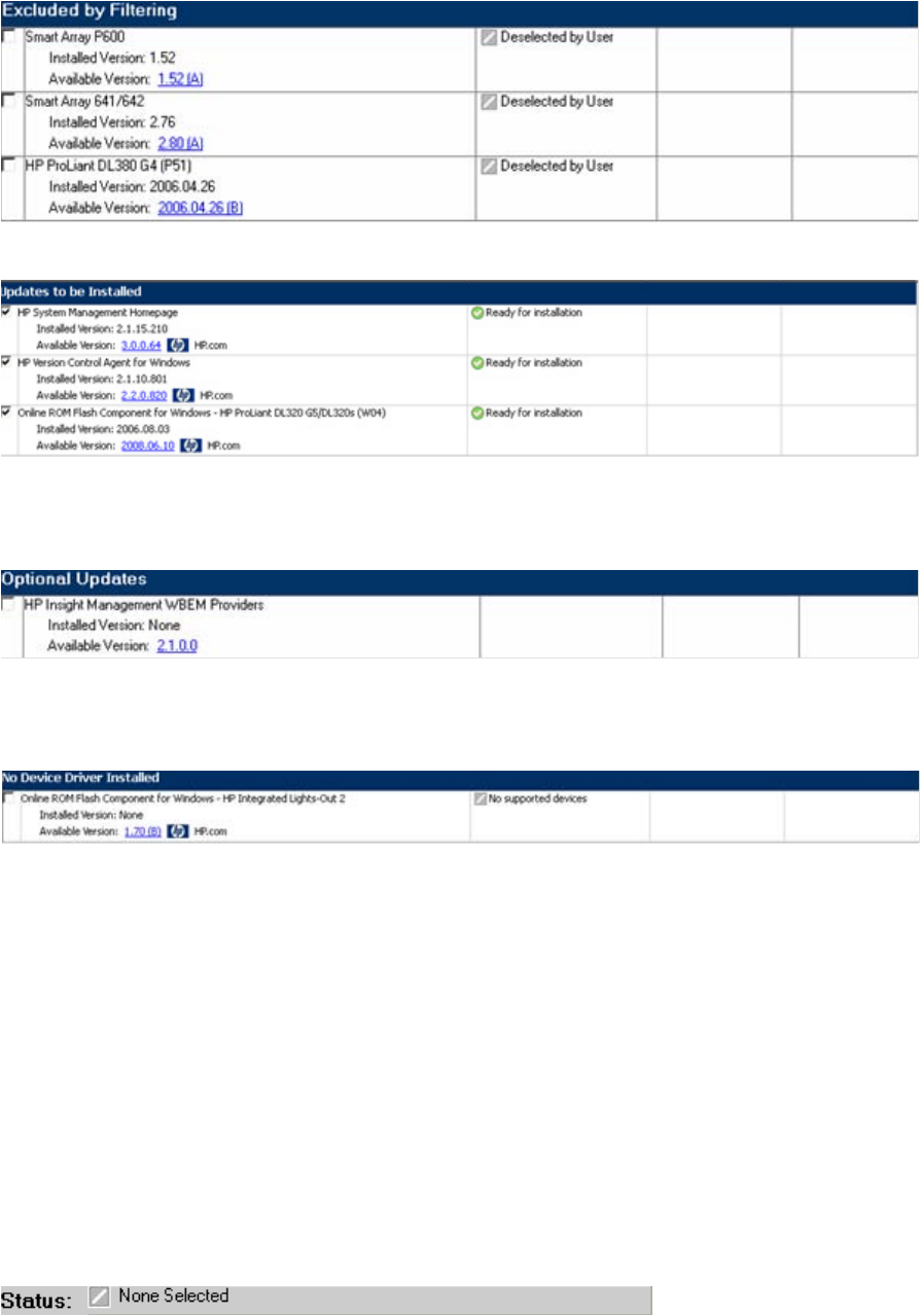• Optional Updates—The components in this section are not selected for installation by default, even if the