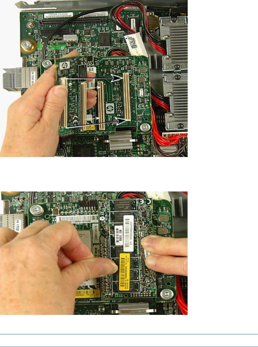 1. With the cache module battery connector facing the side of the server blade that memory cell