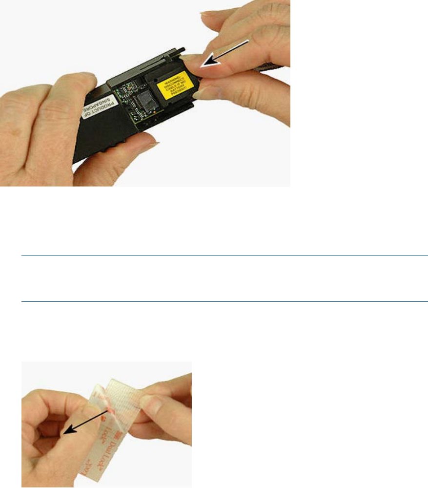 b. Place the sticker on the bottom of the BBWC battery (not over the open area).