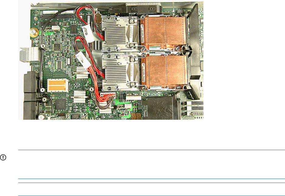 8. If the controller is in mezzanine slot 1 or 2 route the cable along the following path: