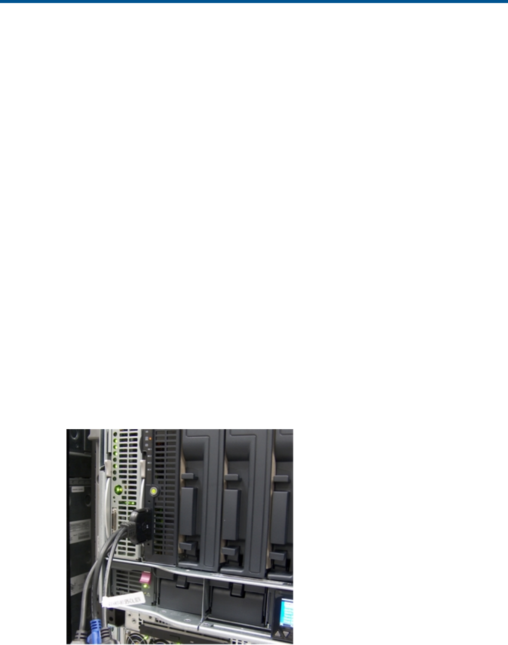 1. Connect the Integrity SUV cable to the front of the server blade.