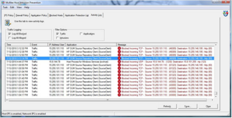 - HP SUM fails on Windows Vista® due to McAfee firewalls