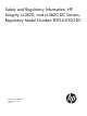 1 HP Integrity cx2620 Server Safety and Regulatory Information Overview Regulatory Compliance statements are required by some countries or regions for international importation of HP servers.