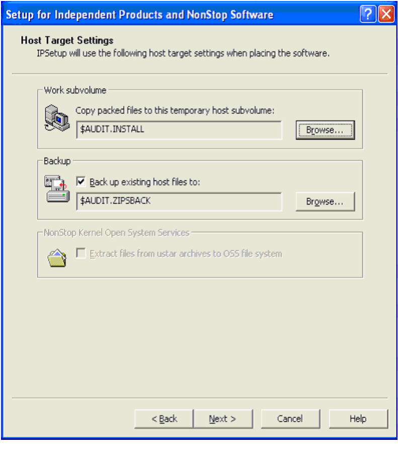 6. Specify the work and backup subvolumes and OSS file extraction on the host. (The