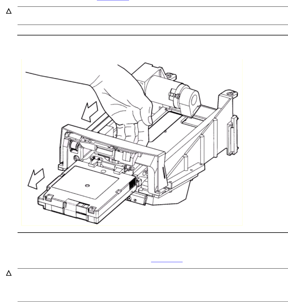 hand is facing the tape library door when it is closed, the door will strike the gripper