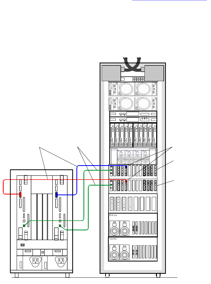 example, the illustration shows the cables from the NonStop S-series IOMF 2 CRUs