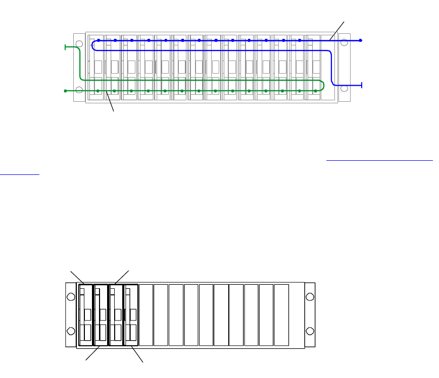 Fiber Channel arbitrated loop cables. This drawing shows the two Fibre Channel