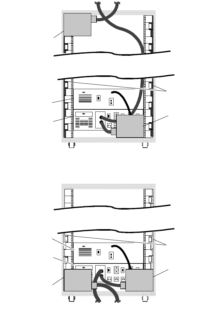 This illustration shows the location of PDUs for AC from the bottom of the cabinet when