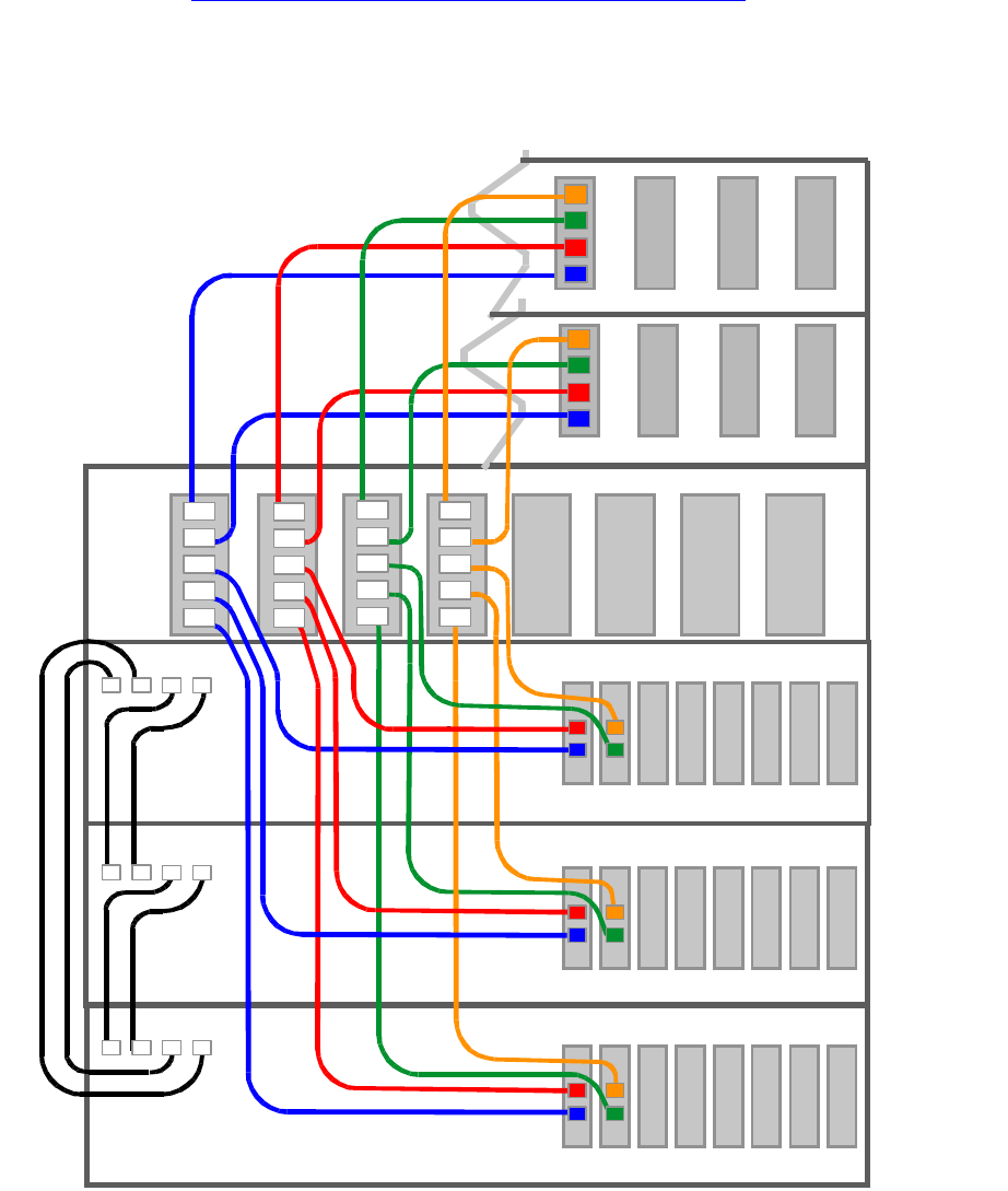 This example of a triplex processor shows the ServerNet cabling to the p-switch PIC in