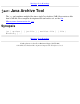 Title Page | Tools Home Page jar: Java Archive Tool The jar tool combines multiple files into a single Java Archive (JAR) file or retrieves files from a JAR file. For a complete description of the tool and its use, see the Sun Microsystems documentation for jar. Synopsis jar [ options ] [ jar-file ] [ manifest-file ] [ file | directory ] ... Title Page | Tools Home Page NonStop Server for Java Tools Reference Pages (529775-002) © 2010 Hewlett-Packard Development Company L.P. All rights reserved.