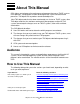 Notation Conventions About This Manual Notation Conventions Hypertext Links Blue underline is used to indicate a hypertext link within text. By clicking a passage of text with a blue underline, you are taken to the location described. For example: This requirement is described under Backup DAM Volumes and Physical Disk Drives on page 3-2. General Syntax Notation This list summarizes the notation conventions for syntax presentation in this manual. UPPERCASE LETTERS.