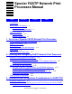 Contents 7. Installation, Configuration, and Usage Considerations for FASTPXNS SVC Sharing Considerations 6-7 Installation and Configuration Task Overview for FASTPX25 6-8 Spooler Configuration Considerations for FASTPX25 6-9 Device Names 6-9 Device Attributes 6-10 FASTCNFG DEVICE and MACRO Configuration for FASTPX25 6-12 Optional DEVICE Attributes for FASTPX25 6-13 Using MACRO Entries 6-16 Sample FASTCNFG File for FASTPX25 6-17 7.