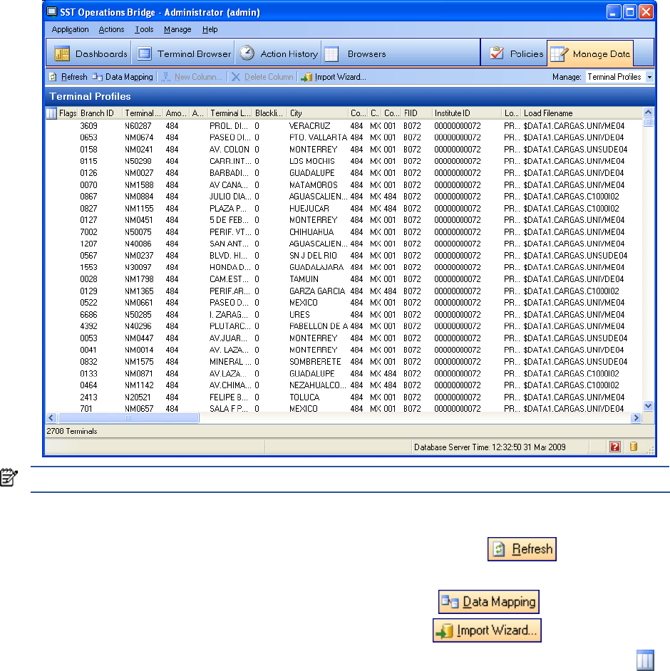 • Refreshing Data: Refresh the data displayed in Terminal Profiles using the
