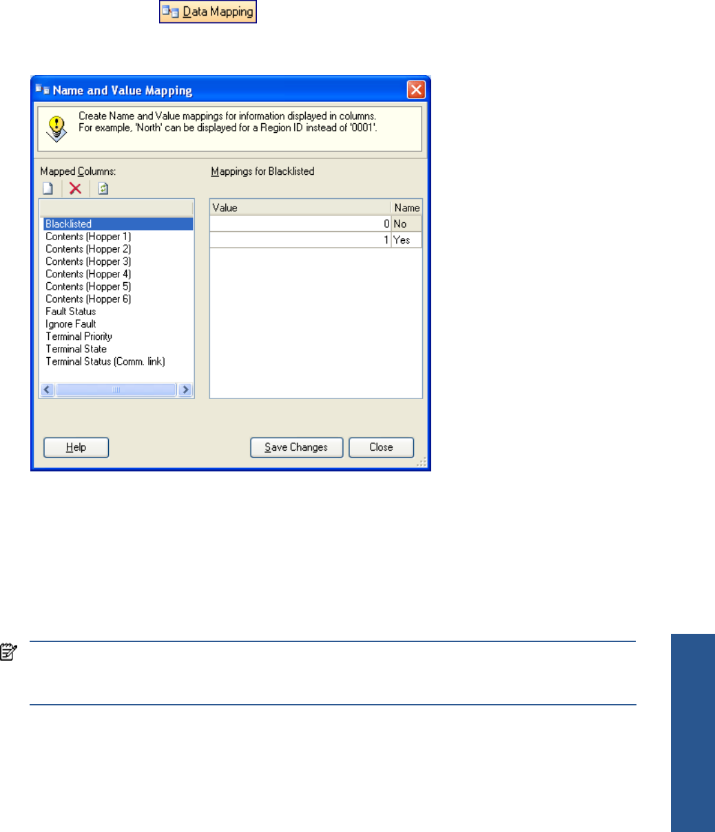 button on the toolbar. The Name and Value Mapping dialog box is