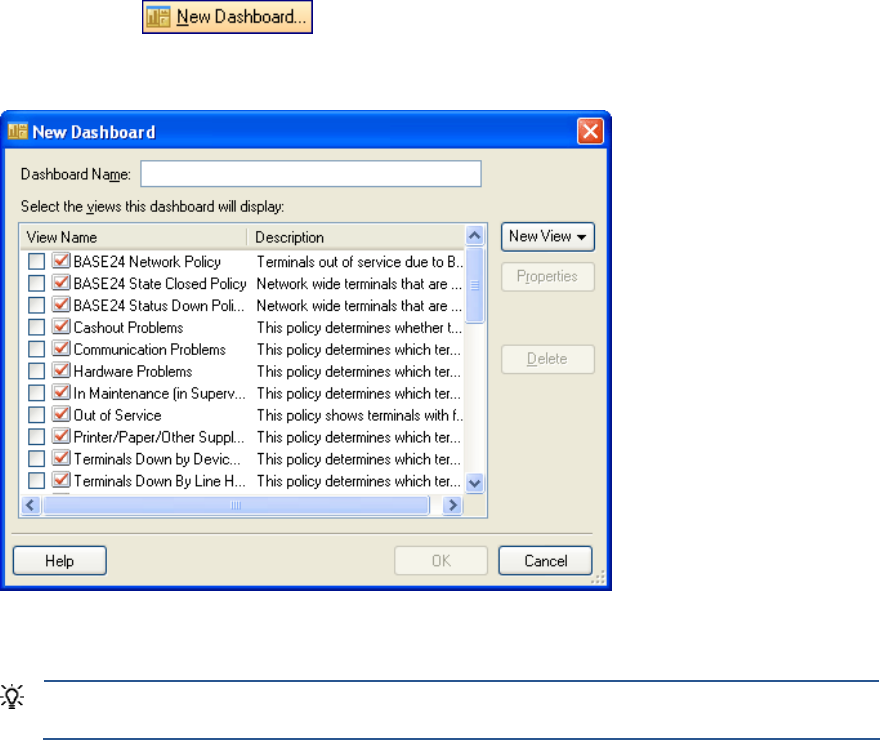 1. Click on the button on the Dashboard toolbar. The New Dashboard dialog box is