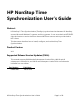 HP NonStop Time Synchronization User’s Guide Abstract HP NonStop™ Time Synchronization (TimeSync) synchronizes time between HP NonStop servers, Microsoft Windows™ systems, and Linux systems. It can act as both an NTP/SNTP client and server to receive time from external NTP time sources and to provide time to NTP clients. This document describes how to install, configure, and use NonStop Time Synchronization. Product Version V01 Supported Release Version Updates (RVUs) This manual supports G06.