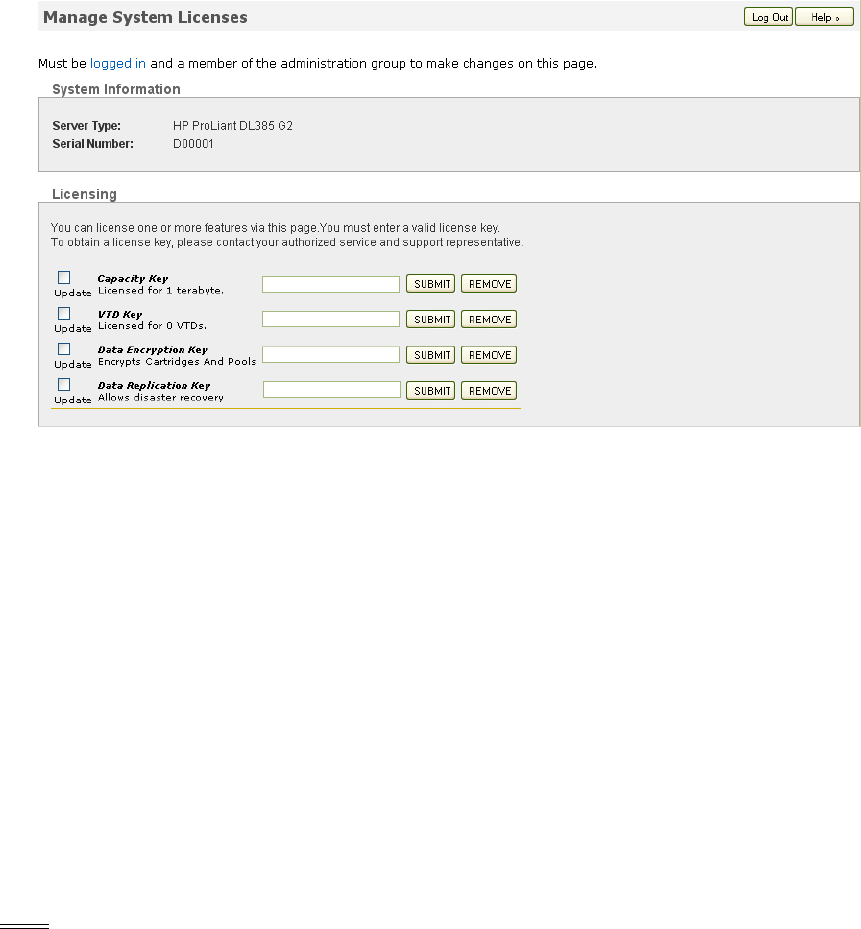 3. Click Manage System Licenses. The following page is displayed: