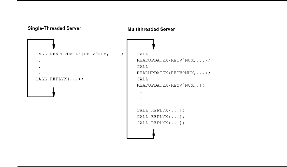Figure 22-1. Single-Threaded and Multithreaded Servers