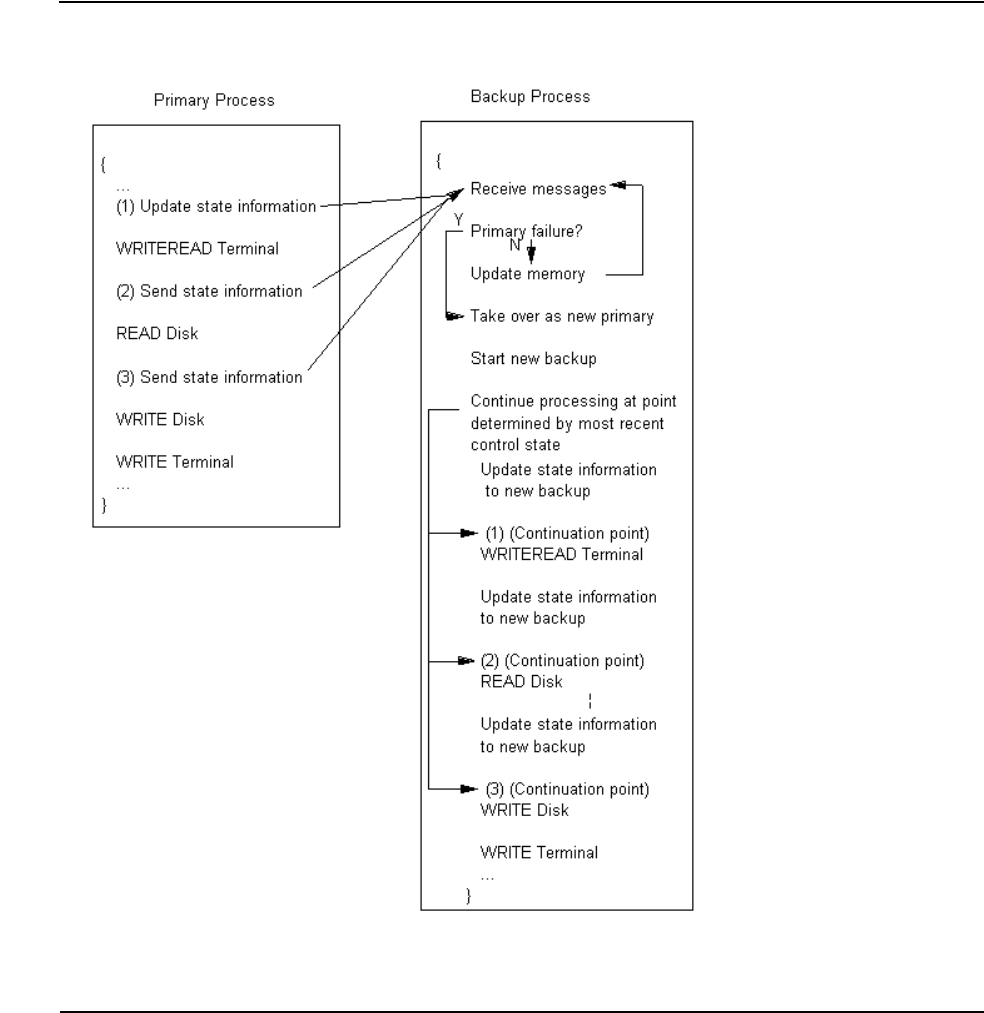 failure occurs, the backup takes over execution at the continuation point indicated by