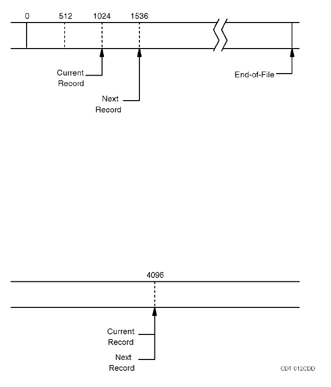 SBUFFER. The next-record pointer is increased by 512 bytes so that further