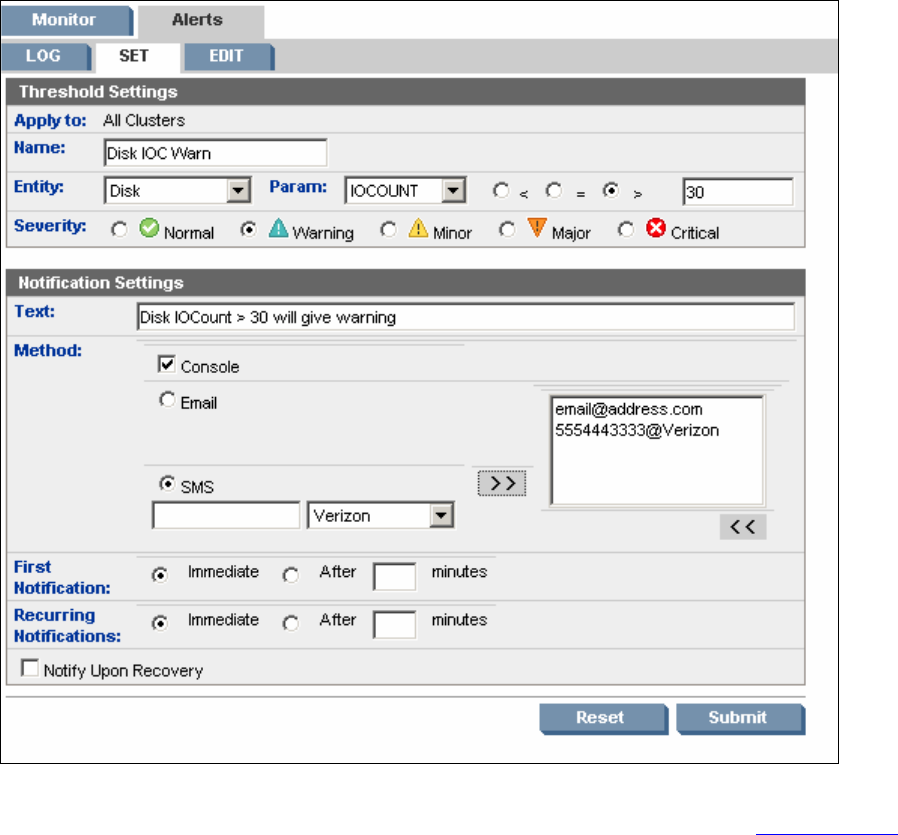 error conditions. Users can also specify custom alert thresholds or alter the existing