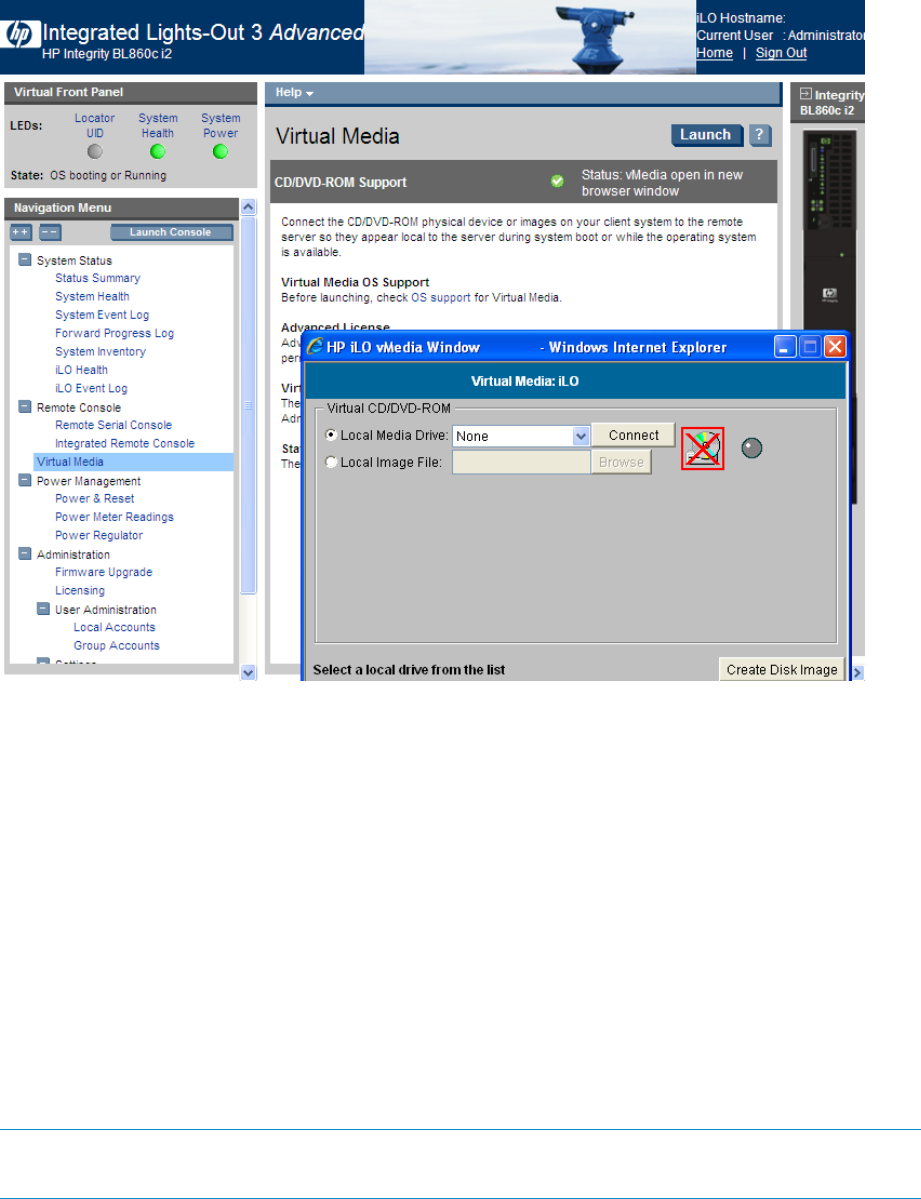 Figure 5 Configuring virtual media using the iLO 3 interface