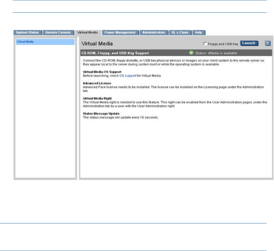 2. Click Launch to load the vMedia applet. The vMedia applet loads in support of the vMedia