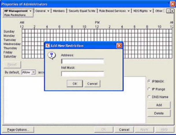 1. To restrict an IP address, select IP/MASK in the Role Restrictions subtab and click Add. The