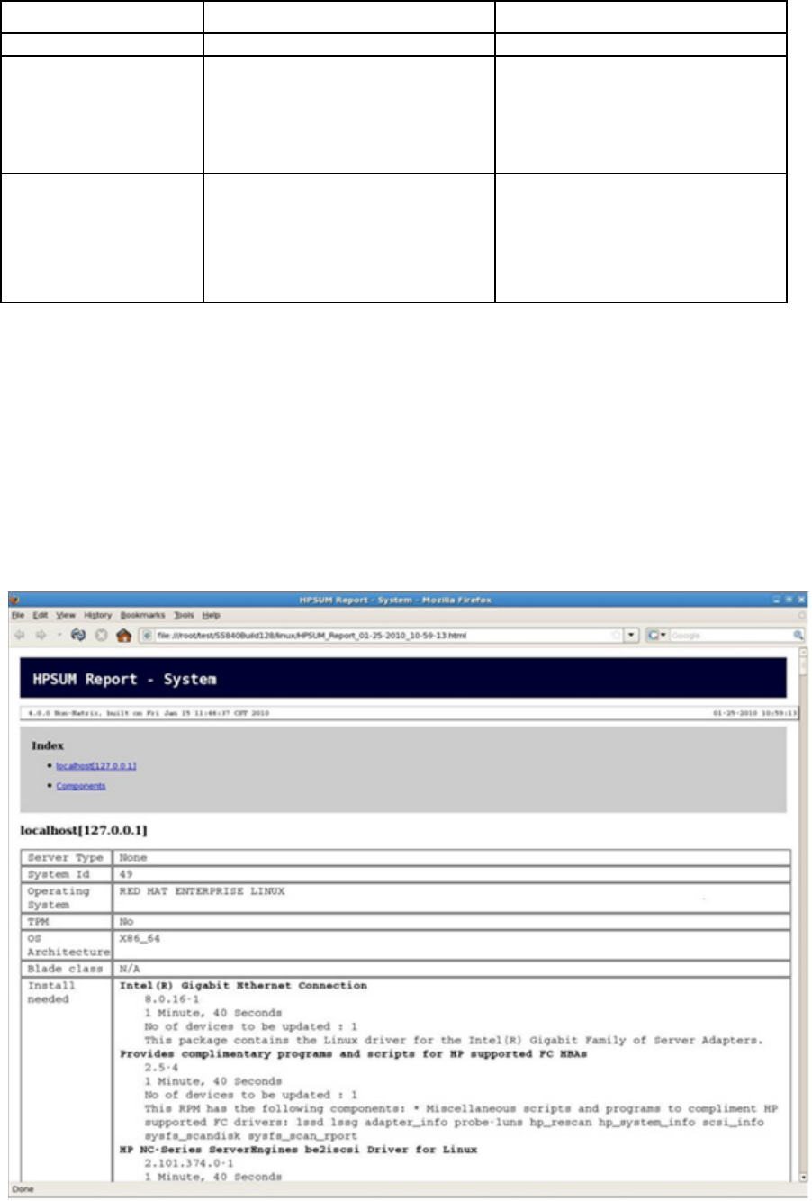 The following figure illustrates the HP SUM report in HTML format.