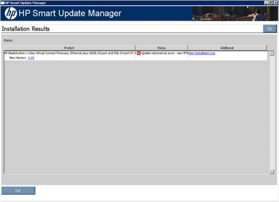 If a VC upgrade is attempted in an invalid or bad health state, HP SUM installation fails. The details of the