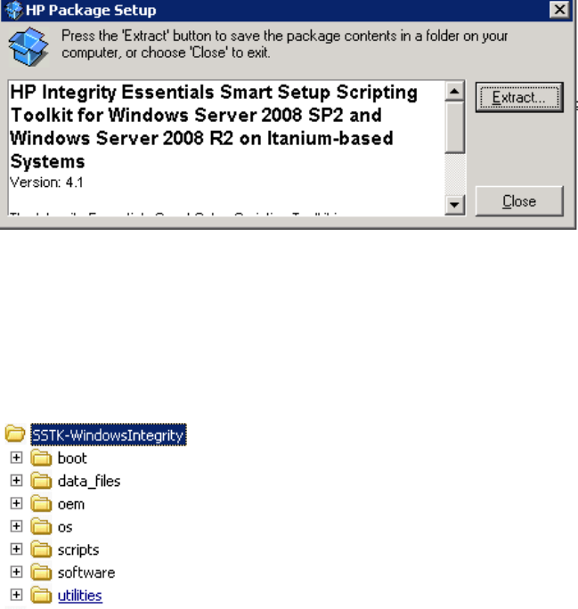 The SSTK software package is a self-extracting package component. You can extract files by