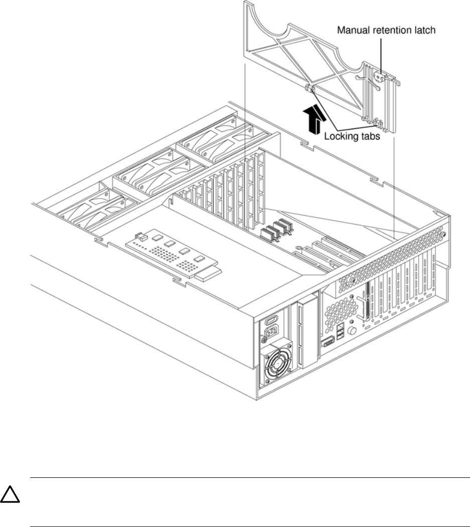 4. Push down on the manual retention latch until it locks into the chassis wall.