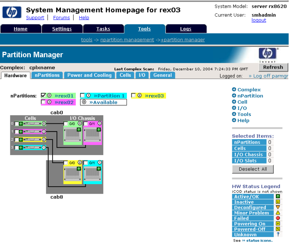 the entire complex. Additional tabs include nPartitions, Power and Cooling, Cells, I/O, and