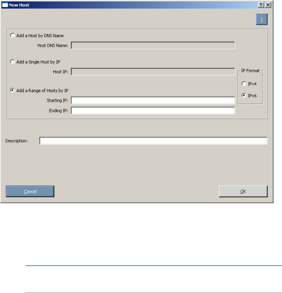 NOTE: When adding hosts using either IP address option, you can select from the IP format