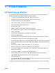 Accessories ● Software and documentation CD ● Remote control ● Power cord ● DisplayPort cable ● RGB (VGA) cable ● External infrared sensor ● Infrared daisy chain cable Optional accessories The following can be purchased separately: 2 ● Stand kit ● Speakers kit ● HP LD4730 Frame System ● HP DreamColor Display Calibration Solution Chapter 1 Product features ENWW