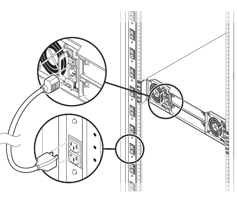 3. Connect the primary power cords from the rack to separate external power sources.