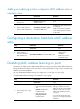 Configuring sub-VLANs To configure multiple sub-VLANs, repeat these steps. To configure a sub-VLAN: Step Command Remarks 1. Enter system view. system-view N/A 2. Create a sub-VLAN and enter VLAN view. vlan vlan-id If the specified VLAN already exists, this command enters VLAN view only. Configuring a super VLAN Step Command Remarks 1. Enter system view. system-view N/A 2. Enter VLAN view.