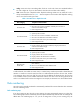 Enabling WRED When you enable WRED, follow these guidelines: • Before enabling WRED, configure the queue af or queue wfq command. • The wred command and the queue-length command are mutually exclusive. • When WRED is disabled, other WRED configurations are deleted. To enable WRED: Step Command Remarks 1. Enter system view. system-view N/A 2. Create a traffic behavior and enter traffic behavior view. traffic behavior behavior-name By default, no traffic behavior is created. 3. Enable WRED.
