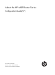 About the HP MSR Router Series Configuration Guides These command references apply to the following models of the HP MSR routers: Model • MSR2003 MSR2000 • • • • • • MSR3000 MSR4000 MSR3012 MSR3024 MSR3044 MSR3064 MSR4060 MSR4080 The HP MSR router series configuration guides describe the software features for the HP MSR Routers, and guide you through the software configuration procedures.