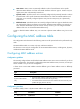 Tasks at a glance Configuring the leaf nodes: • • • • • • • • • • (Required.) Setting the spanning tree mode (Optional.) Configuring the device priority (Optional.) Configuring the timeout factor (Optional.) Configuring the maximum port rate (Optional.) Configuring edge ports (Optional.) Configuring path costs of ports (Optional.) Configuring the port priority (Optional.) Configuring the port link type (Optional.) Enabling outputting port state transition information (Required.