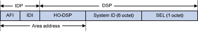 The area address comprises the IDP and the HO-DSP of the DSP, which identify the area and the routing