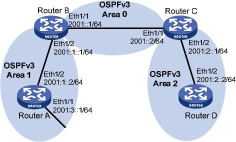 [RouterB-Ethernet1/2] ospfv3 1 area 1