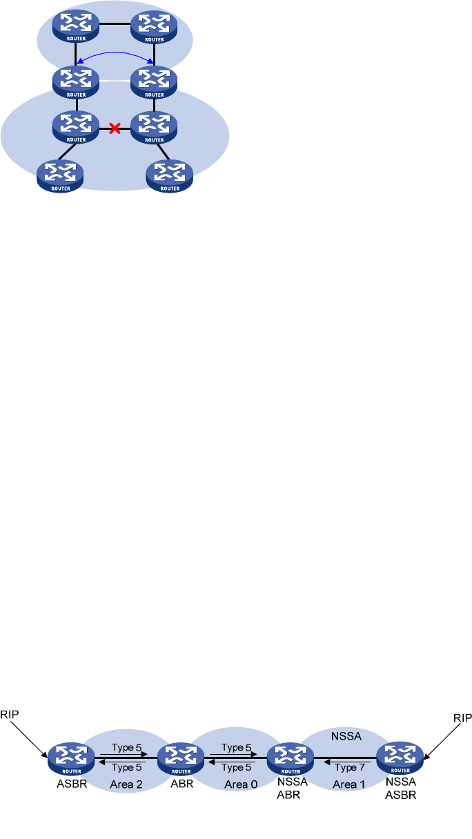 LSAs, the NSSA ABR translates them to Type-5 LSAs, and advertises the Type-5 LSAs to Area 0.