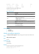 TCA sent 0 TCA received 2 Config sent 0 Config received 0 RST sent 0 RST received 0 MST sent 4 10:33:11 01/13/2010 MST received 151 10:37:43 01/13/2010 Timeout BPDUs 0 Max-hoped BPDUs 0 TC detected 511 10:32:40 01/13/2010 TC sent 8844 10:33:11 01/13/2010 TC received 1426 10:33:32 01/13/2010 10:33:12 01/13/2010 Table 14 Command output Field Description Port Port name. Instance-Independent Statistics not related to any particular MSTI. Type Statistical item.