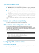 • The manually configured static and blackhole MAC address entries cannot survive a reboot if you do not save the configuration. The manually configured dynamic MAC address entries are lost upon reboot whether or not you save the configuration. A frame whose source MAC address matches different types of MAC address entries is processed differently. Type Description Static MAC address entry • Discards the frame received on a different interface from that in the entry.
