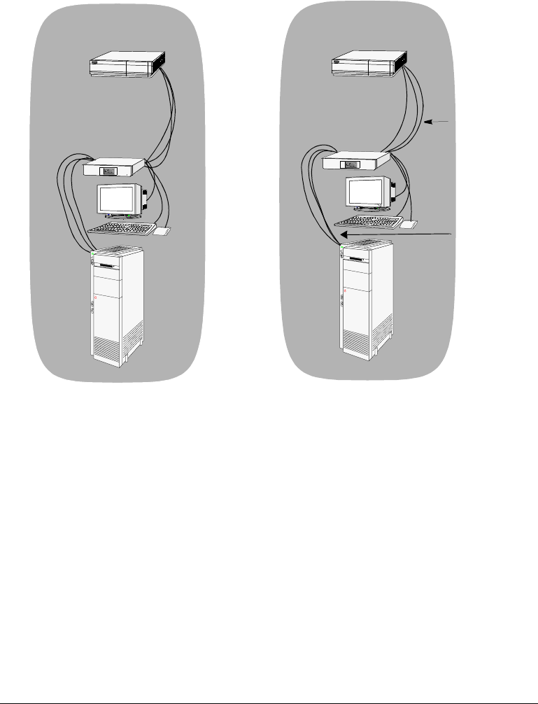 This example shows a configuration of the hardware with a KVM switch so that the IOP and