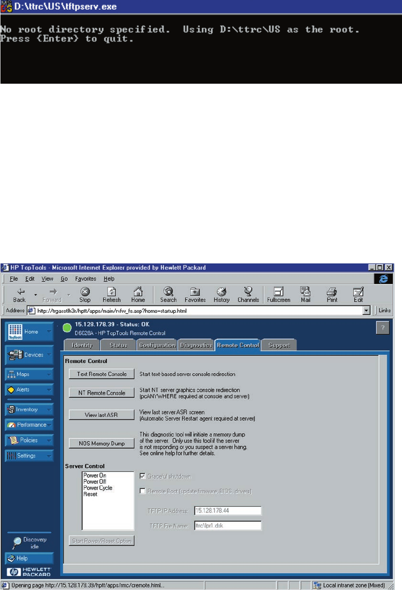 From the C:\ directory, double-click on tftpserv.exe. A DOS command prompt window appears